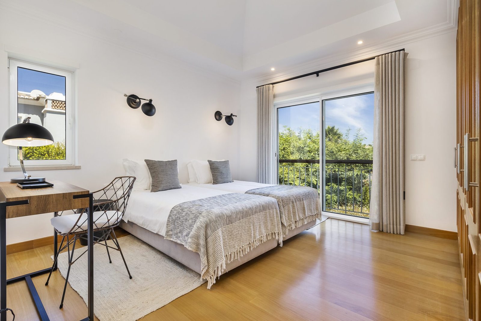 Stairs lead to the first floor, where the two remaining rooms are located. Bedroom three is the Master bedroom, with a double bed, a big en-suite bathroom and a private terrace with stunning views over Quinta. Bedroom four is a double bedroom (twin beds) with an en-suite bathroom and a small private terrace.